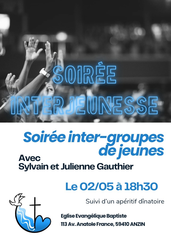 - Samedi 2 mai à 18h30 – Inter-jeunesse avec Sylvain et Julienne Gauthier