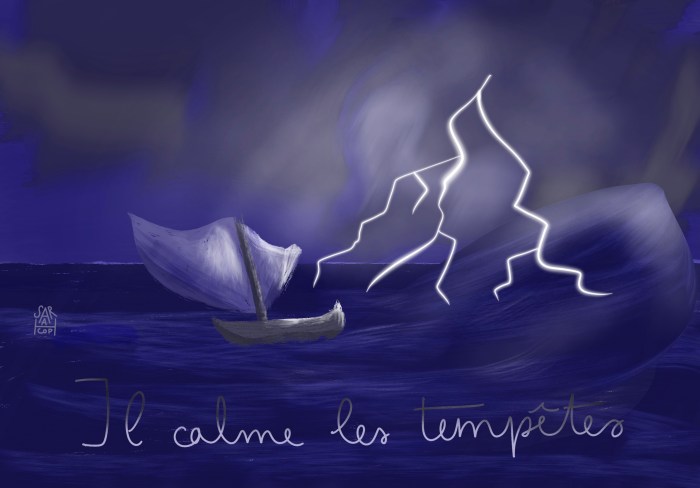 Aujourd’hui Pierre nous exhorte avec la lecture d’un Psaume et d’un chant, faisant écho à un épisode instructif de la vie de Jésus et de ses disciples. Au plus fort de la tempête, Jésus est à nos côtés 🙂 Versets du jour Psaume 107:24-30